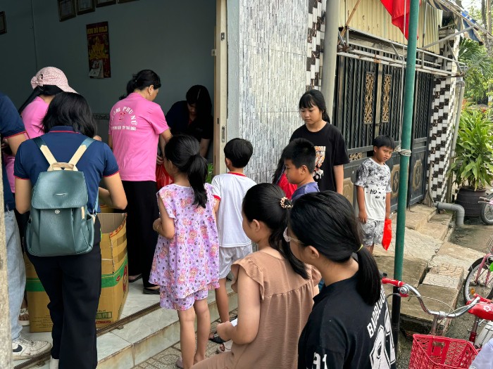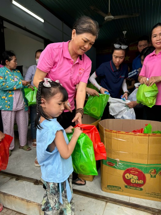 Trong không khí rộn ràng của ngày hội, các thành viên Khả Doanh cùng các cô trong Hội phụ nữ khu phố 1 đã tận tay trao gửi những phần quà nhỏ nhưng đong đầy yêu thương đến các bé – những thiên thần bé nhỏ đang háo hức chờ đón ngày lễ của riêng mình.