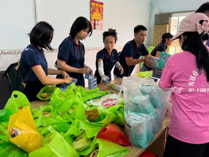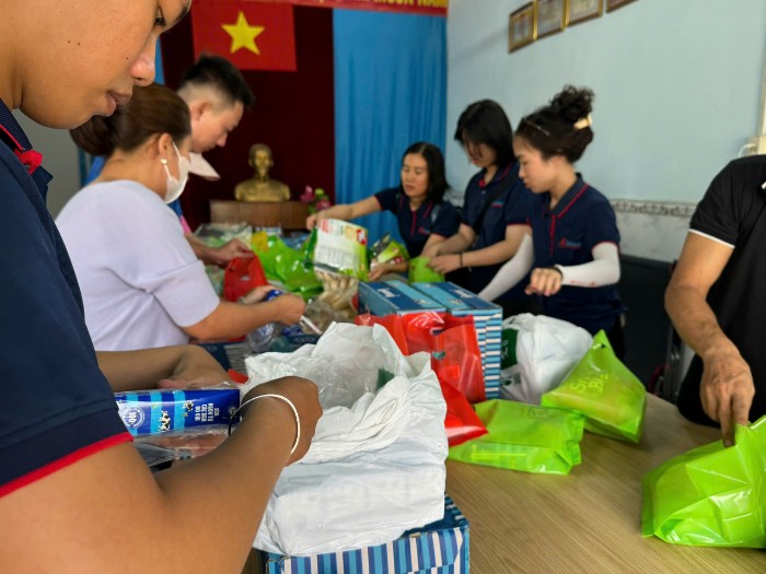 Không khí ngày hội rộn ràng bắt đầu từ sớm tại Trụ sở khu phố 1. Từng phần quà được chuẩn bị tỉ mỉ, gói ghém không chỉ bằng vật chất mà còn chứa đựng tất cả sự trân trọng và yêu thương của đội ngũ Khả Doanh cùng các Cán bộ và các cô trong Hội phụ nữ khu phố 1.