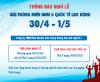 Thời gian nghỉ lễ: Thứ 7 ngày 30/04/2022 đến hết Thứ hai ngày 02/05/2022