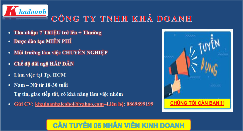 CÔNG TY TNHH KHẢ DOANH cần tuyển 05 Nhân viên kinh doanh.