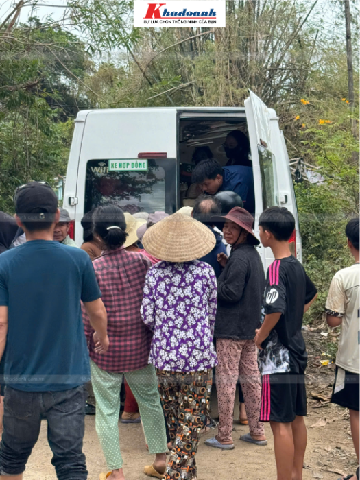 Ngôi làng nhỏ này nằm lọt thỏm giữa đồng ruộng, tách biệt với bên ngoài. Nhiều bà con còn chưa kịp nắm thông tin về việc có đoàn cứu trợ. Một cô lớn tuổi đã nghẹn ngào chia sẻ: “Khổ lắm, xe nó đậu tít ngoài quốc lộ ấy, có hay biết cái chi đâu, ra tới nơi là hết rầu.”.