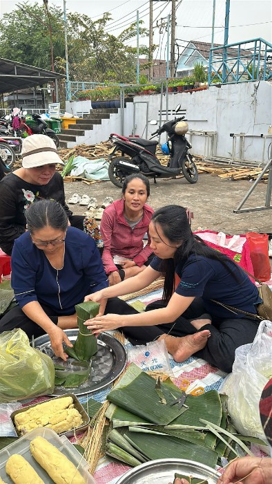 Chương trình đã thu hút sự tham gia của các bạn trẻ bộ phận văn phòng Công ty Khả Doanh, các bạn trẻ Đoàn viên và các hộ gia đình đang sinh sống tại phường Long Bình. Mỗi người đều góp sức từ khâu chuẩn bị nguyên liệu, đóng gói bánh đến việc nhóm lửa nấu những chiếc bánh xinh xắn. Tinh thần đoàn kết và niềm vui lan tỏa trong từng hoạt động, mang lại không khí ấm áp và đầy ý nghĩa.