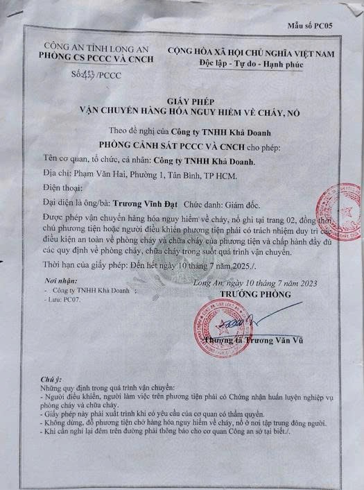 Chúng tôi đều có đầy đủ các giấy cần thiết cho chuyên chở sản phẩm đặc thù