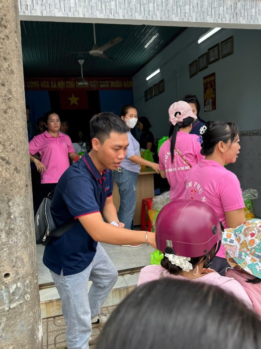 Trong không khí rộn ràng của ngày hội, các thành viên Khả Doanh cùng các cô trong Hội phụ nữ khu phố 1 đã tận tay trao gửi những phần quà nhỏ nhưng đong đầy yêu thương đến các bé – những thiên thần bé nhỏ đang háo hức chờ đón ngày lễ của riêng mình.