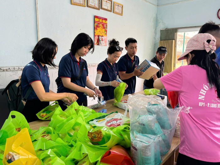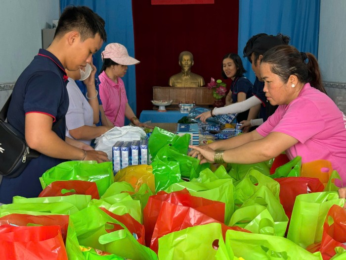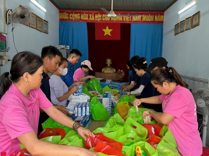 Không khí ngày hội rộn ràng bắt đầu từ sớm tại Trụ sở khu phố 1. Từng phần quà được chuẩn bị tỉ mỉ, gói ghém không chỉ bằng vật chất mà còn chứa đựng tất cả sự trân trọng và yêu thương của đội ngũ Khả Doanh cùng các Cán bộ và các cô trong Hội phụ nữ khu phố 1.