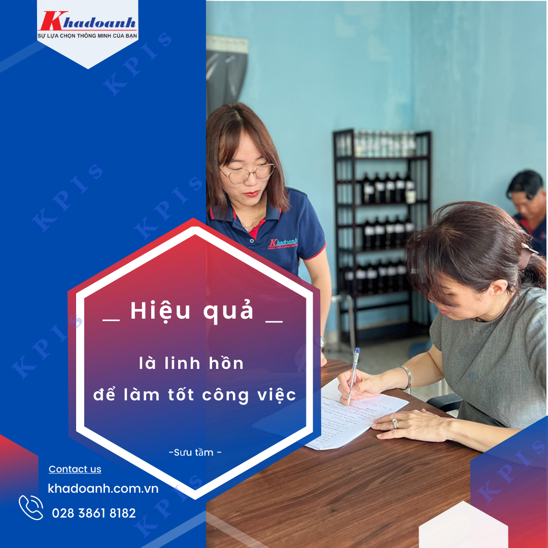 Hiệu quả công việc sẽ phụ thuộc vào hoàn cảnh, thời gian, những yếu tố tác động từ môi trường xung quanh. Mỗi doanh nghiệp đều có một chỉ tiêu hiệu quả công việc riêng cho từng nhân sự, từ đó có phương án đào tạo và phát triển riêng, tại Khả Doanh cũng vậy, Hiệu quả là văn hóa số 2 mà chúng tôi đặt ra đồng thời nhằm tạo động lực làm việc hiệu quả cho các nhân viên, chúng tôi đang áp dụng các phương pháp: