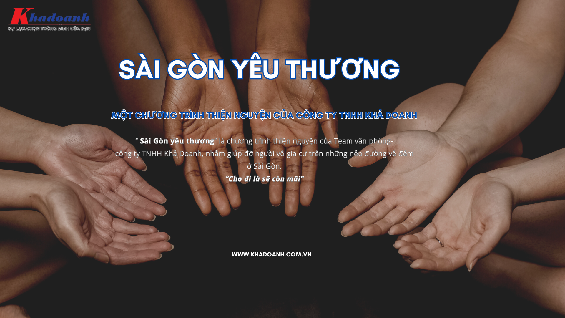 Nhìn thấy những mảnh đời trên những góc phố, vỉa hè,.. Team Văn Phòng Chi nhánh Tân Phú của công ty TNHH Khả Doanh đã cùng nhau phát động chương trình “ Sài Gòn Yêu Thương”, nhằm giúp đỡ phần nào những mảnh đời vô gia cư trên những nẻo đường về đêm của Sài Gòn.