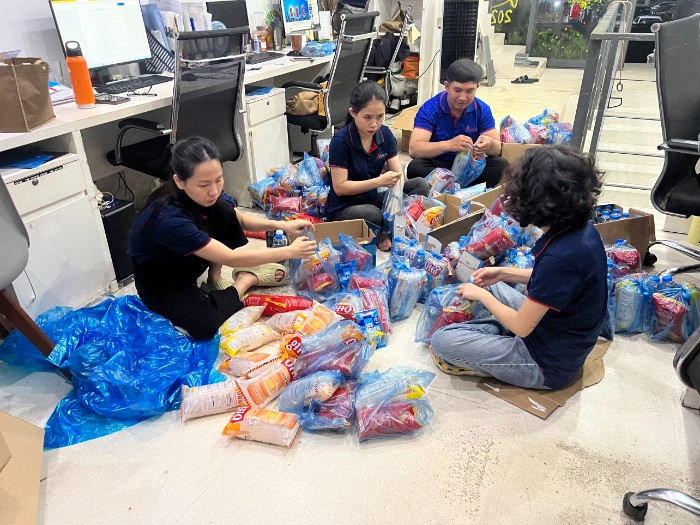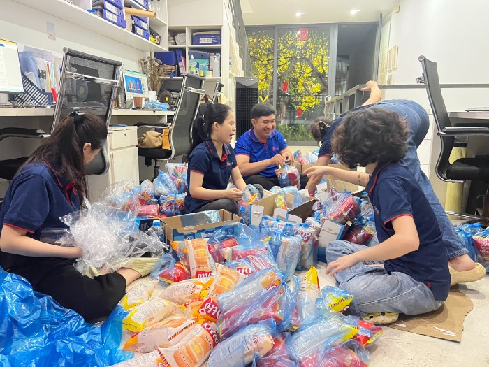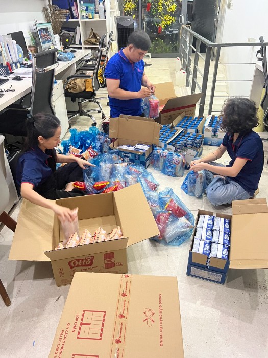 Lý do Team lựa chọn những món quà này là vì với thời tiết nắng nóng quanh năm của Sài Gòn thì thực phẩm đóng gói như bánh mì sẽ tiện lợi và có thời gian sử dụng tốt hơn so với thực phẩm nấu: cơm, cháo,… và được mọi người dùng phổ biến hơn.
