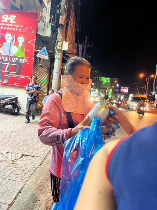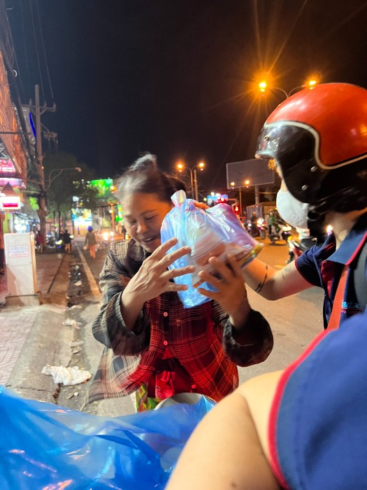 Khi màn đêm buông xuống, hành trình rong ruổi trên con phố, mái hiên, vỉa hè đường Cộng Hòa, Trường Chinh, Lạc Long Quân, Âu Cơ,…của Team bắt đầu. Những suất quà: bánh mì, nước suối, sữa,…tưởng chừng như bé nhỏ nhưng lại mang đầy ý nghĩa. Giúp những người vô gia cư ấm bụng trong đêm.