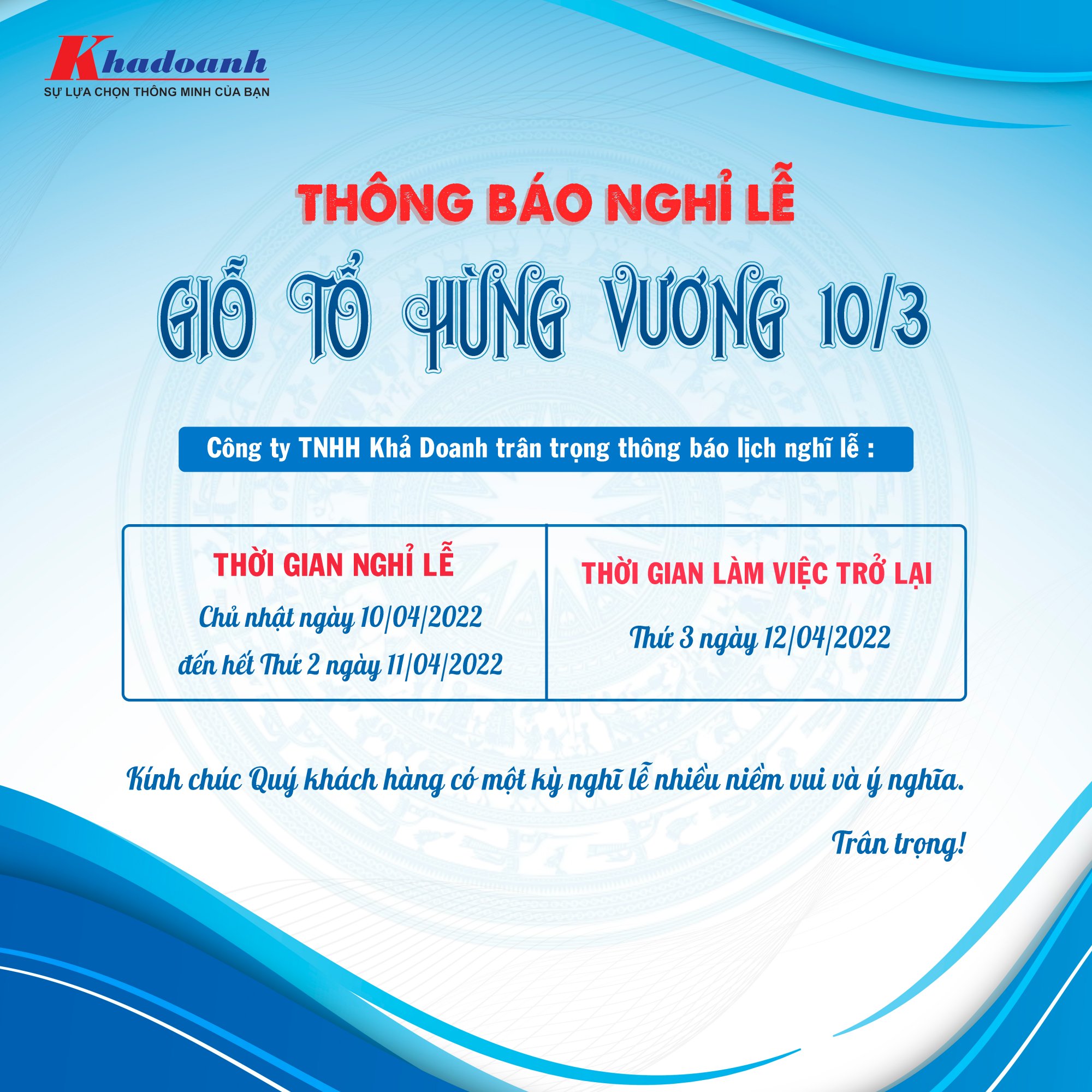 Công ty TNHH Khả Doanh trân trọng thông báo thời gian nghỉ lễ Giỗ Tổ Hùng Vương 10/03