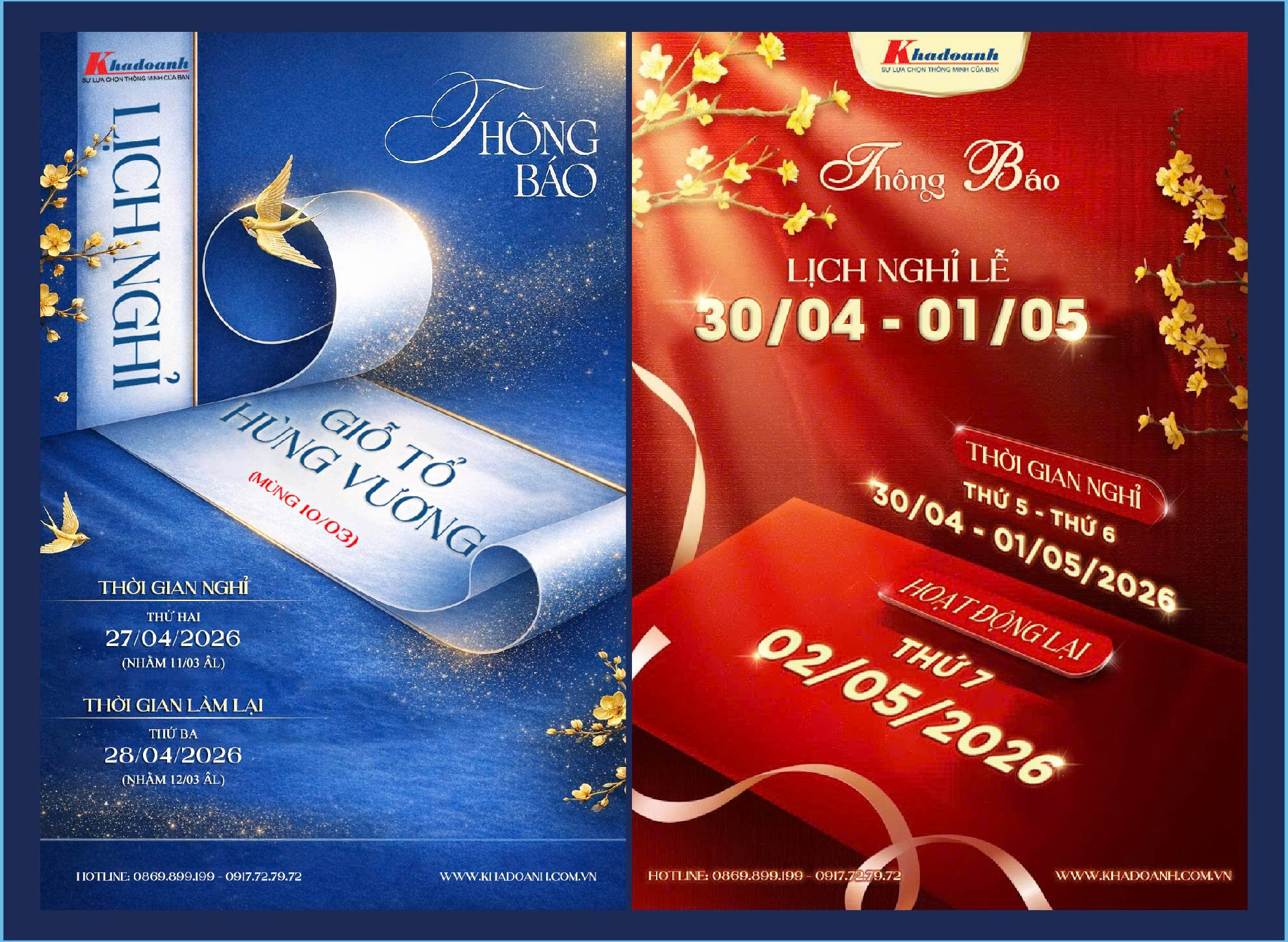Công ty TNHH Khả Doanh trân trọng thông báo thời gian nghỉ lễ Giỗ Tổ Hùng Vương, Giải Phóng Miền Nam 30/4 và Quốc Tế Lao Động 1/5 năm 2026: