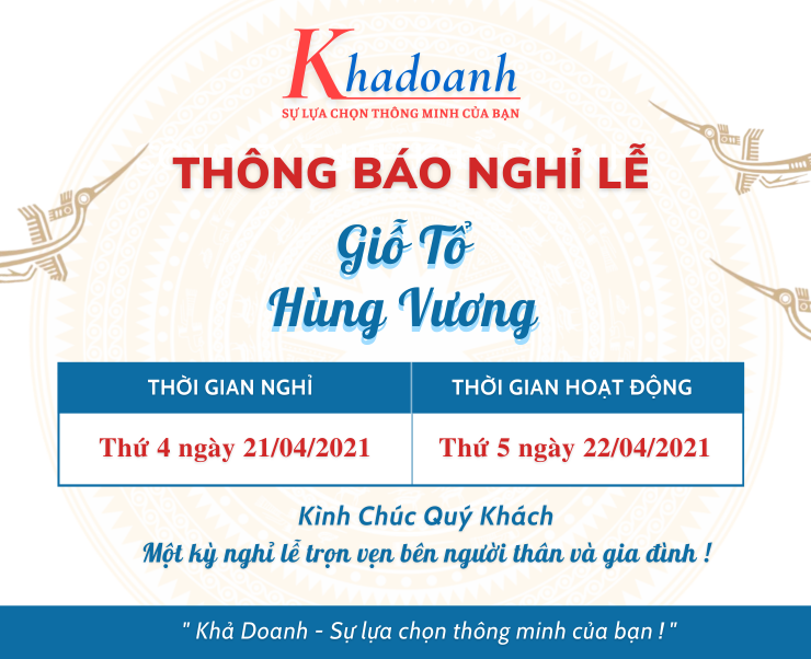 Công ty TNHH Khả Doanh xin trân trọng thông báo thời gian nghỉ lễ Giỗ Tổ Hùng Vương.