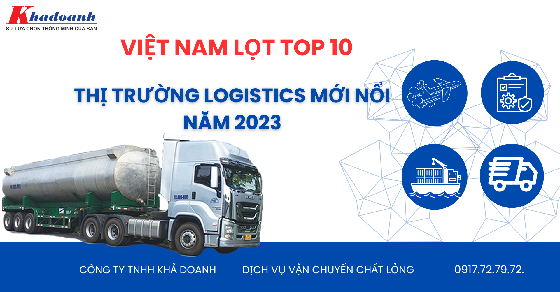 Nhà cung cấp dịch vụ vận tải và hậu cần kho vận Agility mới công bố danh sách 50 thị trường logistics mới nổi hấp dẫn nhất thế giới năm 2023. Theo đó, Việt Nam xếp hạng 10 trên tổng số 50 thị trường logistics mới nổi.